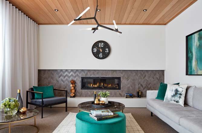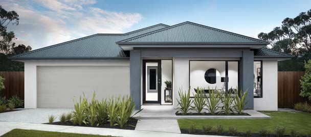 Designer Vogue Contempo Cape Facade images are to be used as a guide only and may show decorative items not included in the base price including driveway, path, fencing, landscaping, timber windows, feature front entry door, coach lights, furnishings and upgraded garage door and roof coverings. Please ask your New Homes Consultant for house specific drawings to assist you in making your choice. 57