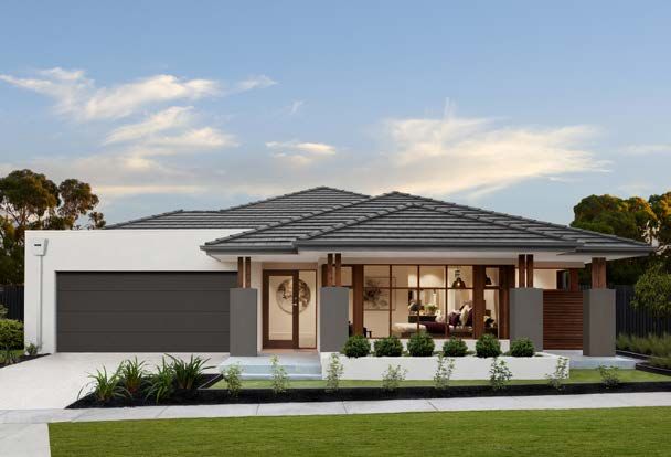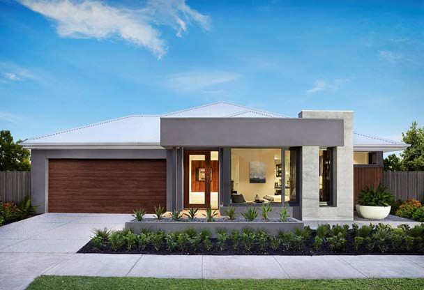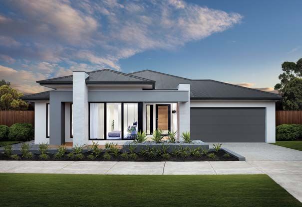 Single Storey Facade Options Premium Modern Metro Viva Facade images are to be used as a guide only and may show decorative items not included in the base price including driveway, path, fencing, landscaping, timber windows, feature front entry door, coach lights, furnishings and upgraded garage door and roof coverings. Please ask your New Homes Consultant for house specific drawings to assist you in making your choice. 56