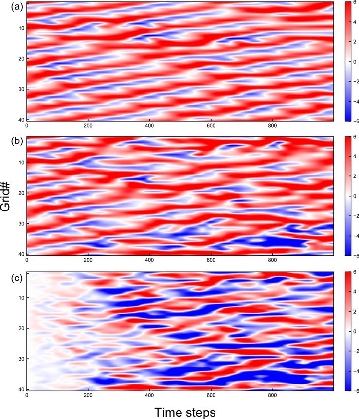 F. Tomizawa and Y. Sawada: Combining ensemble Kalman filter and reservoir computing 5633 Table 3. The indices of observed grid points. Grid point index # observed 1 2 3 4 5 6 7 8 9 10 11 12 13 14 15 16 17 18 19 20 21 22 23 24 25 26 27 28 29 30 31 32 33 34 35 36 37 38 39 40 40 • • • • • • • • • • • • • • • • • • • • • • • • • • • • • • • • • • • • • • • • 38 • • • • • • • • • • • • • • • • • • • • • • • • • • • • • • • • • • • • • • 36 • • • • • • • • • • • • • • • • • • • • • • • • • • • • • • • • • • • • 30 • • • • • • • • • • • • • • • • • • • • • • • • • • • • • • 20 • • • • • • • • • • • • • • • • • • • • Therefore, when we use RC to predict spatiotemporal unlike other neural networks (Chattopadhyay et al., 2020; Lu chaotic systems with sparse observation data, we need to et al., 2017). Therefore, RC is considered as a promising tool interpolate them to generate the appropriate training data. for predicting spatiotemporal chaos. Although our method However, the interpolated data inevitably include errors even has flexibility in the choice of machine learning methods, we if the observation data itself have no error, so it should consider that the good performance with RC is important in be verified that RC can predict accurately by training data this research context. with some errors. Previous works such as Chattopadhyay et The good performance of our proposed method supports al. (2020), Pathak et al. (2017), or Vlachas et al. (2020) have the suggestion of Dueben and Bauer (2018), in which ma- not considered the impact of error in the training data. We chine learning should be applied to the analysis data gener- found that the prediction accuracy of RC degrades as the er- ated by data assimilation methods as the first step of the ap- ror in training data grows, but the degradation rate is not so plication of machine learning to weather prediction. As Weyn large (if all the training data of all the grid points are ob- et al. (2019) did, we successfully trained the machine learn- tained). We can expect from this result that RC trained with ing model with the analysis data. the interpolated observation data can predict accurately to Most importantly, we also found that the prediction by RC- some extent, but the interpolated data should be as accurate Anl is more robust to the model biases than the extended as possible. forecast by LETKF (i.e., LETKF-Ext). This result suggests In this study, LETKF was used to prepare the training data that our method can be beneficial in various real problems, for RC, since LETKF can interpolate the observations and as the model in real applications inevitably contains some reduce their error at the same time. We showed that our pro- biases. Pathak et al. (2018a) developed the hybrid predic- posed approach works correctly. Brajard et al. (2020) also tion system of RC and a biased model. Although Pathak et made a CNN learn the dynamics from sparse observation al. (2018a) successfully predicted the spatiotemporal chaotic data and successfully predict the dynamics of the L96 model. systems using the biased models, they needed perfect ob- However, as mentioned in the introduction section, Brajard servations to train their RC. The advantage of our proposed et al. (2020) iterated the learning and data assimilation until method compared to these RC studies is that we allow both they converge, because it replaced the model used in data as- models and observation networks to be imperfect. As in the similation with CNN. Although their model-free method has review by Karniadakis et al. (2021), methodologies to train an advantage that it was not affected by the process-based the dynamics from noisy observational data by integrating model’s reproducibility of the phenomena, it can be compu- data and physical knowledge are attracting attention. In the tationally expensive since the number of iterations can be rel- NWP context, some studies proposed methods to combine atively large. By contrast, we need to train RC just one time, data assimilation and machine learning to emulate the sys- because we use the process-based model (i.e., data assimila- tem dynamics from imperfect models and observations (e.g., tion method) to prepare the training data. We overcome the Bocquet et al., 2019, 2020; Brajard et al., 2020; Dueben problem of computational feasibility. and Bauer, 2018), and these approaches are getting popular. Note also that the computational cost of training RC is Our study significantly contributes to this emerging research much lower than the other neural networks. Since the frame- field. work of our method does not depend on a specific machine Although we tested our method only on the 40- learning framework, we believe that we can flexibly choose dimensional Lorenz 96 system, Pathak et al. (2018b) indi- other machine learning methods such as RNN, LSTM, ANN, cated that parallelized RC can be extended to predict the etc. Previous studies such as Chattopadhyay et al. (2020) dynamics of substantially high dimensional chaos such as a or Vlachas et al. (2020) revealed that these methods show 200-dimensional Kuramoto–Sivashinski equation with small competitive performances compared to RC in predicting spa- computational costs. Moreover, the applicability to the real- tiotemporal chaos. Using them instead of RC in our method istic NWP problems has also been discussed in their sequel would probably give similar results. However, the advantage study (Wikner et al., 2020). These studies imply that the find- of RC is its cheap training procedure. RC does not need to ings of this study can also be applied to higher-dimensional perform an expensive