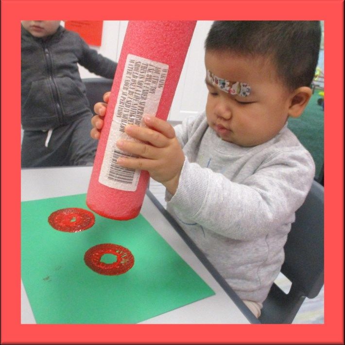 Sharnee provided the children with a green piece of paper each, red and black paint