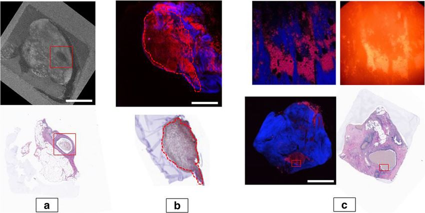 fluorescence imaging as seen in increased pixel intensity. opsies were obtained for ethical reasons. The results out-