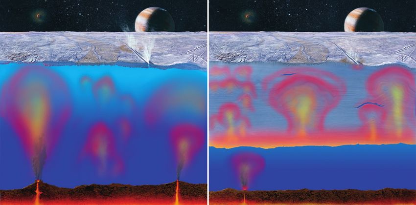 Europa’s icy surface is thought to hide a global subsur-