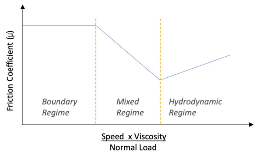 Cosmetics 2021, 8, 71 15 of 20 Figure 12. Stribeck curve. There are two trends exhibited when comparing the reduction in wet combing force between the four different molecular weight hyaluronic acids. Looking specifically at the lower-molecular-weight (8, 90 and 130 kDa) hyaluronic acids, as the molecular weight in- creases, the viscosity increases, and the reduction in wet combing force decreases, meaning the friction coefficient increases. This could place these Newtonian samples in the hydro- dynamic regime. For the highest molecular weight (800 kDa), the reduction in combing force increases slightly from the 130 kDa sample, meaning the friction coefficient decreases while viscosity increases. There are two possible explanations for the increase in reduction found between these two molecular weights. Most likely, because the 800 kDa HA is non-Newtonian, both low shear rate and high shear rate viscosities have to be consid- ered. The first possible explanation occurs at higher shear rates such as 105 , where due to shear-thinning behaviors, the viscosity of the 800 kDa would actually be lower than that of the 130 kDa HA. With lower viscosity, yet the same larger reduction in wet combing force and, in turn, smaller friction coefficient, this would put the 800 kDa sample in the hydrodynamic regime as well. For the second possible explanation, at low shear rates, the 800 kDa hyaluronic acid has a larger viscosity, a larger reduction in wet combing force and therefore a smaller friction coefficient. This could show that the sample might be in the mixed regime, and that it was able to form a thicker, lubricating layer on the hair surface which decreased the friction coefficient. This possible change in regime could be confirmed by conducting tribology; however, that was outside of the scope of this study. The effects of hyaluronic acid concentration on the reduction in wet combing force were also explored. Pure 800 kDa hyaluronic acid at 0.25, 0.5, 0.75 and 1 wt. %, as seen in the flow curves, are non-Newtonian, and the overall viscosity increases as concentration increases, so viscosity at different shear rates does not need to be considered when utilizing the Stribeck curve. Another observed trend is that as concentration increases, the reduction in combing force increases, so the friction coefficient decreases. It can be assumed these samples reside in the mixed regime, which can be understandable given that the mixed regime correlates with wet combing after conditioning. Next, the effects of HA concentration, combined with either ASL or APG, on the reduction in wet combing force were studied. Regardless of the surfactant, the samples containing 0.5 or 1 wt. % HA were non-Newtonian and the samples without HA were Newtonian. This does not affect the comparison of viscosity because even at higher shear rates, the viscosities of the samples containing HA will not drop below the sample without HA. That being said, as the concentration of hyaluronic acid increases, the overall viscosity increases and the reduction in wet combing force increases. In terms of the curve, as viscosity increases, the friction coefficient decreases, meaning these samples may also be