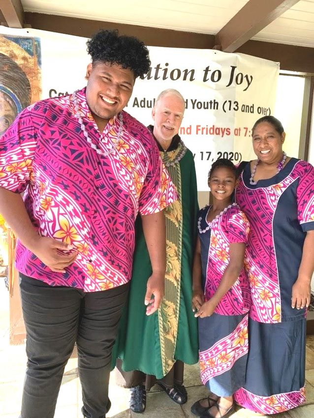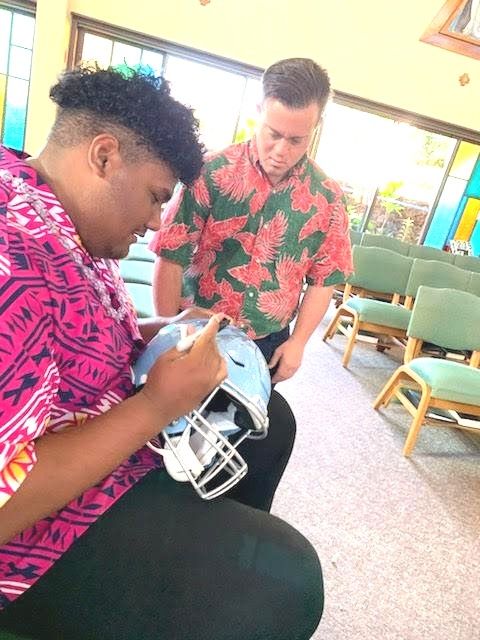Come and join us at our Mardi Gras celebration! February 25, 2020 Mass will be at 5:00 pm, followed by the burning of the blessed palms and prayers by Father Mike. Musician Pierre Grill will then lead us into the gym with “When the Saints Go Marching In” and then the party begins. Pierre and 2 other musicians will entertain us with Jazz, Rock and more, befitting a true Mardi Gras Party. Music, Costumes, Prizes and lots of Good Food and fellowship will follow. Dress up and come join us for this fun filled event. Sign up before or after mass with how many people in your group and what you would like to share Augustine Educational Foundation 2020 This past weekend we were blessed with a visit from Faaope Laloulu (Ope) who spoke on how the Augustine Educational Foundation made a difference in his life. He shared how Catholic teachings helped to mold his moral and ethical beliefs. Ope has accepted a football scholarship to the University of Oregon after his graduation in June, where he will become an Oregon Duck. We send this gentle giant with our support and prayers. Ope surprised Brett Berk with a gift of his helmet worn in the Polynesian Bowl. The generosity Holy Trinity has shown to the Augustine Educational Foundation makes it possible for students such as Ope and other deserving students to obtain a Catholic education.