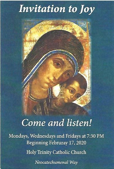 Holy Trinity Catholic Church A Stewardship Parish February 16, 2020 Sixth Sunday in Ordinary Time Pastor: Fr. Michel Dalton, OFM Capuchin Deacons: Steve Kula and Fernando Ona Masses: Saturday: 5 pm; Sunday: 7, 9 & 11 am; Weekdays: 5 pm Reconciliation (Confession): Saturday: 3:45 - 4:15 or by appointment Our vision: To be a welcoming parish committed to serving others. Our mission: To make Christ known to the world through Word, Sacrament, Prayer and Service