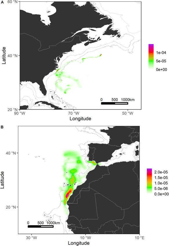 Texas A&M University Corpus Christi, Southwest Atlantic spent large periods of time near the Canary Archipelago and