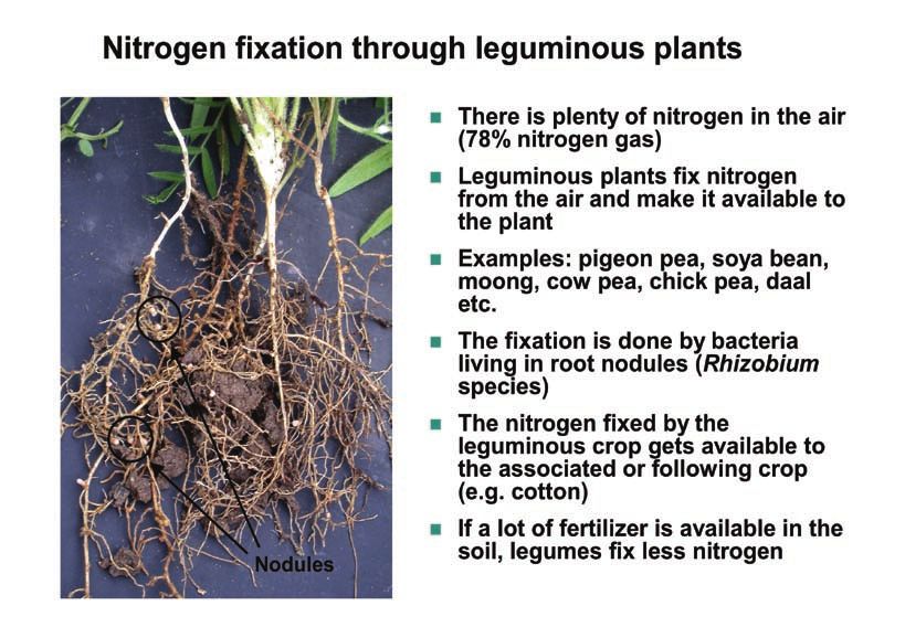 3.2 The importance of soil organic matter Cotton prefers fertile soils with good water hol- they are available to the crop. Last but not least, ding capacity and sufficient nutrient supply organic material feeds and hosts a huge num- (see Chapter 2.2). On many farms, the conti- ber of beneficial soil organisms, such as earth nuous application of chemical fertilizers has led worms and microbes, which continuously work to a loss of soil fertility. This is mainly due to a toward improving soil fertility. lack of organic matter – the residues of plant Thus, for getting good, stable yields it is im- material and organic manures remaining in the portant that organic farmers ensure a continuous soil. The application of nitrogen fertilizer acce- supply of organic material to the soil – not only lerates the decomposition of organic matter. for cotton! The most important source of organic Organic matter has a very crucial significance matter are the residues of the crops grown on the for soil fertility improvement (Figure 8). It field itself (leaves, stalks, roots etc.). Therefore, ba- ensures a soft and loose soil with good porosity lanced crop rotation, intercropping, and mulching and thus good infiltration of water. The organic are the most efficient ways to enhance soil fertility. matter particles act like tiny sponges, thus kee- This is complemented by the application of farmy- ping the soil moist for a longer time. Organic ard manure, compost and organic manures such as matter takes up and releases nutrients so that oil cakes, press mud, etc. (see Chapter 4.5). Figure 8: The importance of organic matter for soil fertility 3.3 Crop rotation – rotation crops It is important that organic cotton is grown in rotation with other crops. This helps to improve and maintain soil fertility and ensures balanced nutrient contents in the soil. If cotton is grown continually on the same field, yields are likely to decrease. Crop rotation and mixed cropping Wheat grown in the win- also help prevent build-up of pest populations, ter season (Rabi) after diseases and weeds. Pests find it more difficult cotton Organic Cotton Crop Guide 15