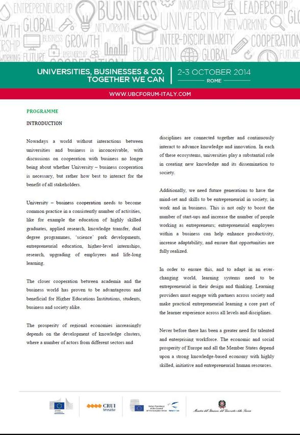 between the academic and the business world; it is held every two years in Brussels. Thematic University-