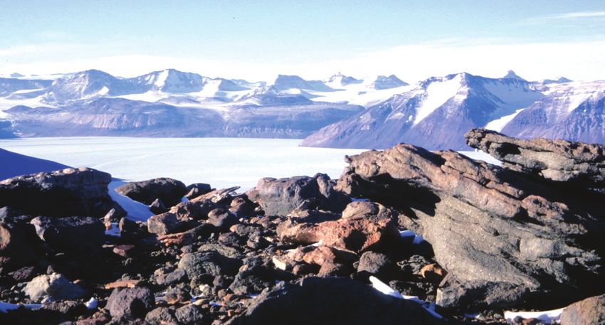 and layers of conglomerate and sandstone; avalanching off hanging glaciers. Some very remember the heat wave which ensued in the etc at the US base when we returned to fix it