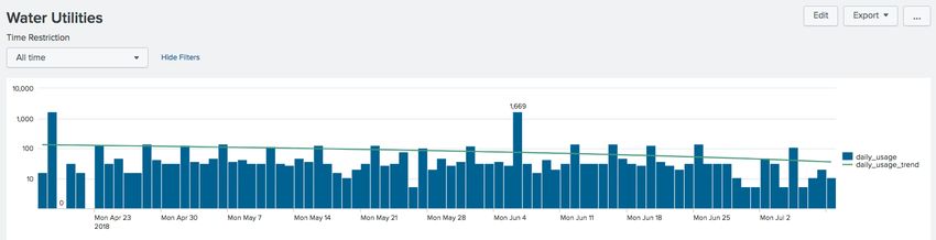 © 2018 SPLUNK INC. Water Utility ▶ Trendline calculated on the fly ▶ Shows daily usage verses the trend over the data.