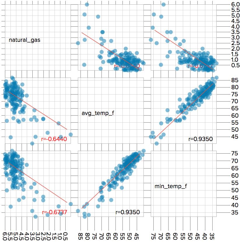 © 2018 SPLUNK INC. Scatterplot Matrix of Natural Gas Information • Compares usage and average temp • Time-restricted for the data, but visualization not time-bound • Each data point is a different day • R=1.000 indicates direct relationship, • R=0.000 indicates no relationship • More usage, when it’s colder.
