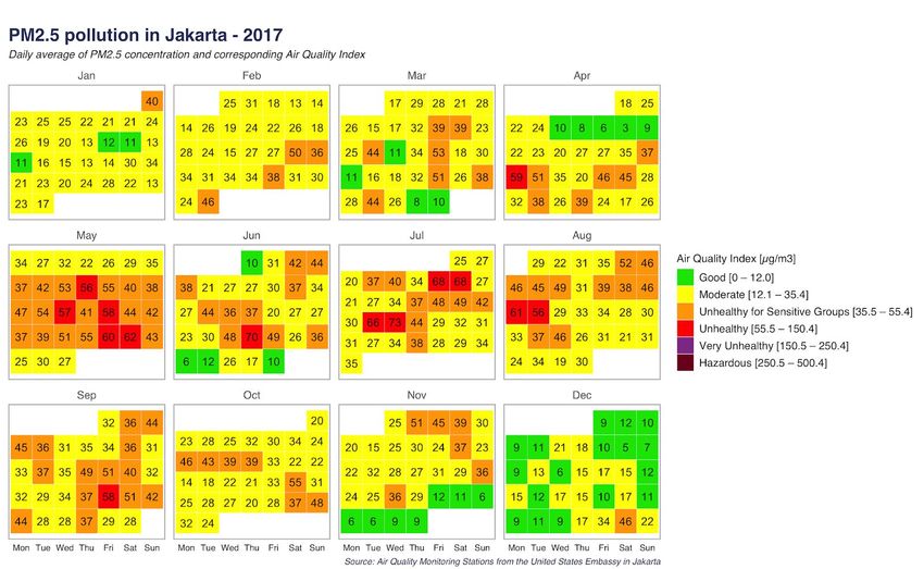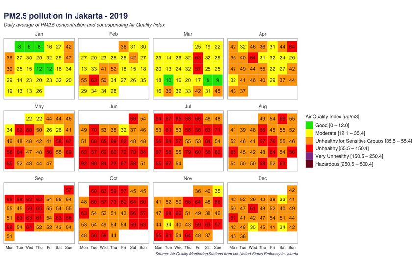 monitoring in Jakarta recorded 101 days with unhealthy air quality in 201 and 172 in